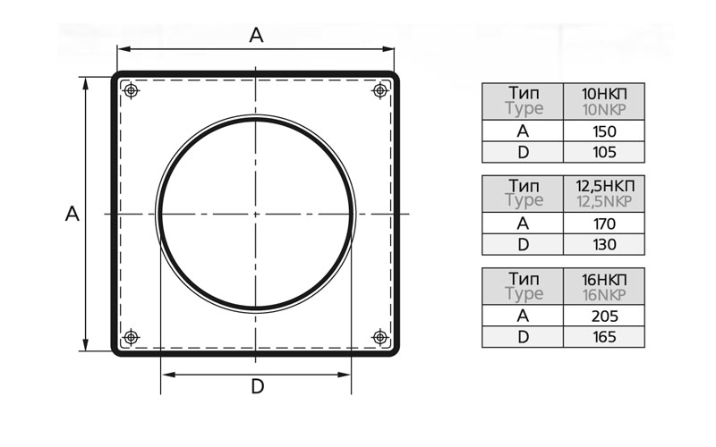 Накладка торцевая 150х150, для круглого воздуховода D100