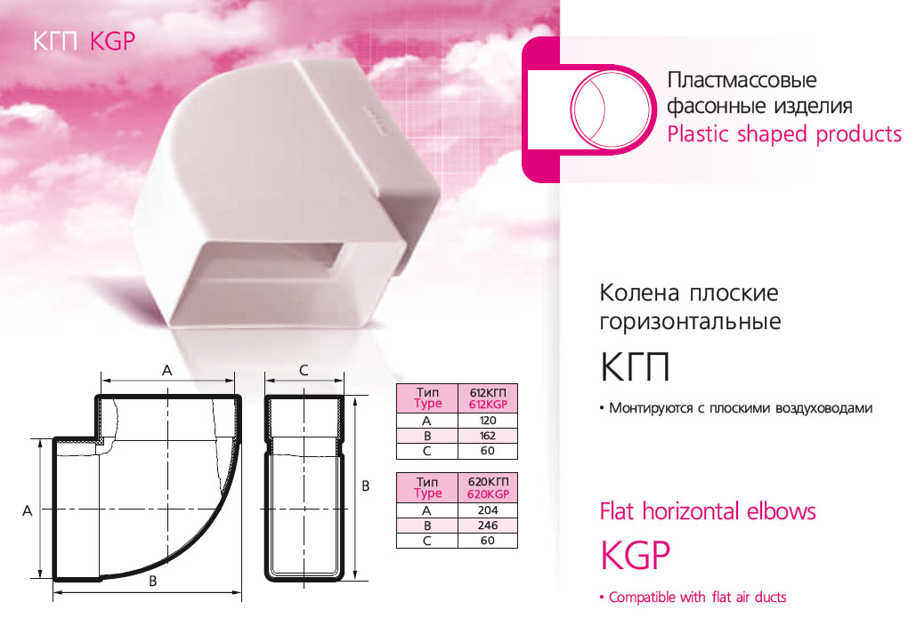 Отвод 90º прямоугольный плоский (пластиковый) ЭРА 612КГП (120х60 мм)