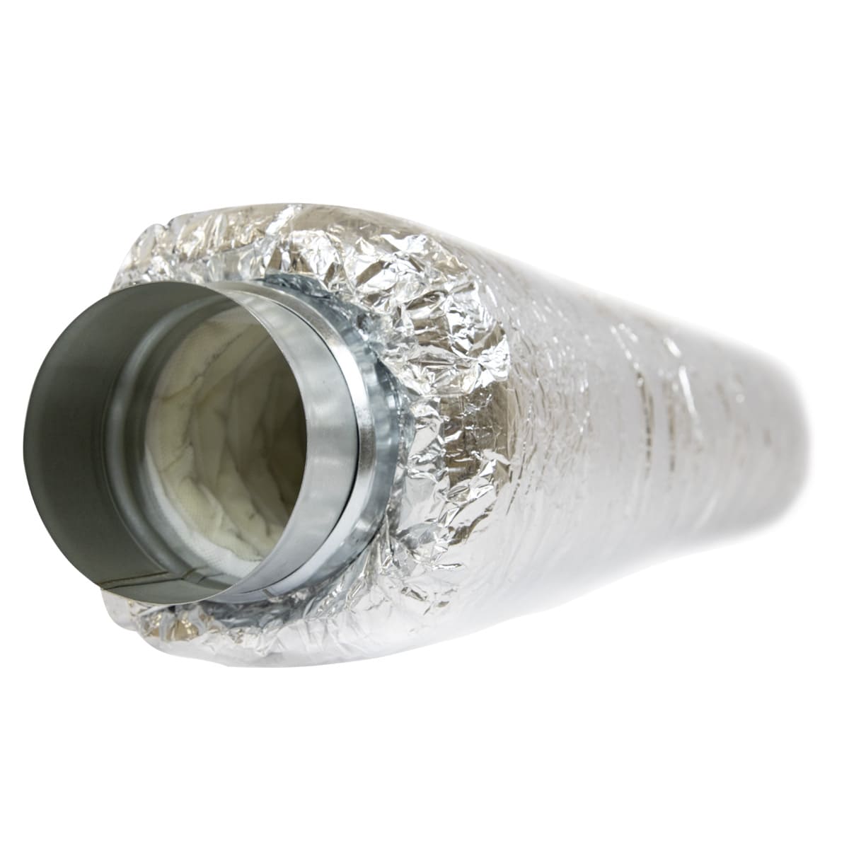 На обоих концах шумоглушителя находятся оцинкованные металлические втулки для легкого подсоединения к любому жесткому воздуховоду или вентиляционному устройству.