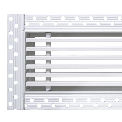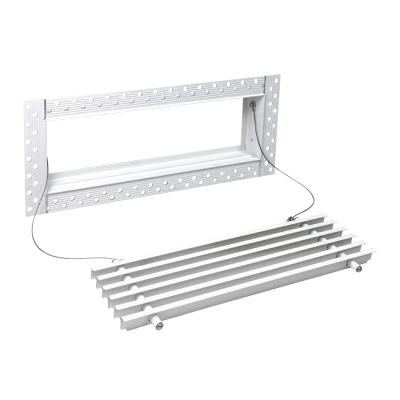 Данная решетка подходит для монтажа на любую поверхность под финишную отделку. Рама оснащена «полкой» 1,9 мм и рифлеными краями для большей адгезии финишного материала – шпатлевки, цемента. Решетка имеет съемную центральную часть с декоративным экраном. Она крепится к корпусу прочными металлическими тросиками, легко снимается для очистки и удобного обслуживания.