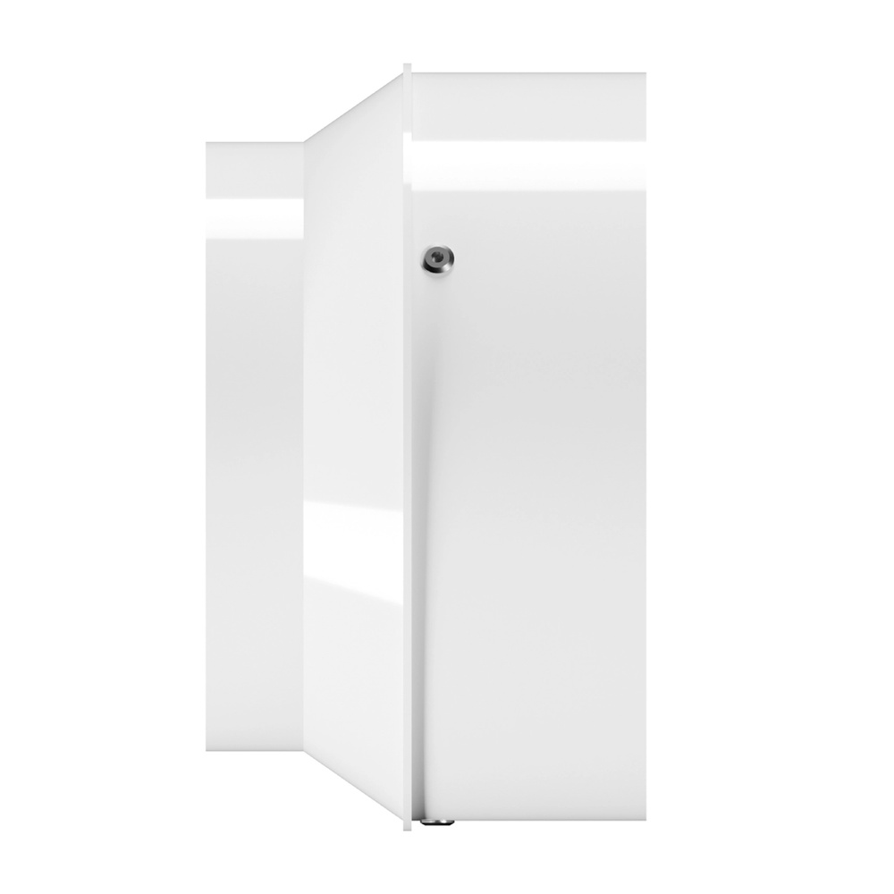 Решетка выполнена из оцинкованной стали толщиной 1,5 мм, что гарантирует прочность конструкции и долгий срок службы. Декоративная часть решетки окрашена белой порошковой краской с текстурой муарового шелка. Благодаря чему декоративная часть решетки гармонично сочетается с белым матовым полотном натяжного потолка, создавая единый стильный образ.